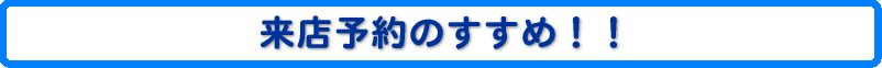 当社は、少数精鋭で皆様のお手伝いをさせて頂いております。その為、業務の関係上、事務所を留守にする事があり、せっかくご来店頂きましても対応できない場合がございます。皆様の貴重なお時間を無駄にしない為に、事前の来店予約をお願いしております。 来店予約は、『電話・メール等』で受付けさせて頂きますので、お気軽に問合せ下さい。 当社都合で申し訳ありませんが、ご理解とご協力をお願い致します。 ご不明な点がありましたら、お気軽に問合せ下さい。 ※ 来店予約を頂いているお客様を優先とさせて頂きますので、予めご了承下さい。